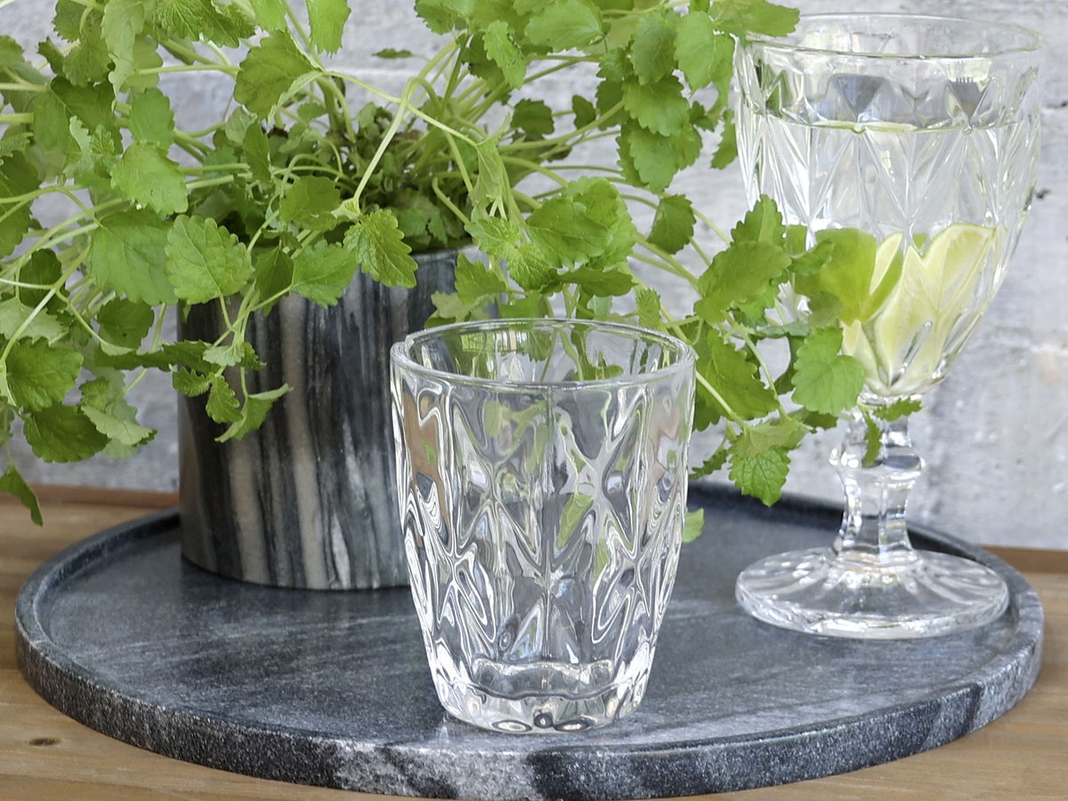 Chic Antiquen laseja koristaa kaunis timanttileikkaus, joka saa juoman näyttämään upealta lasissa. Tarjoile lasista mehua, smoothie tai vaikka ihana kesäinen mocktail.