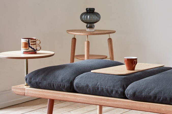 Käännettävän tyynyn takaa löytyy myös leposohvaan sopiva ohut tarjotin, jolle voit laskea kahvikuppisi tai elektroniikkalaitteesi.