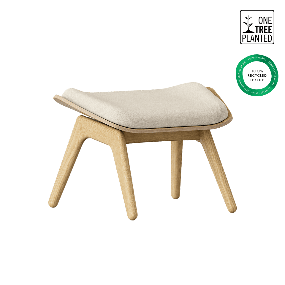 Luonteikas mutta kevyt — The Reader Ottoman on muotoiltu toimimaan täydellisesti Thre Reader -nojatuolin parina. Rahin pehmusteet on leikattu niin, että ne paljastavat kauniin puun.
