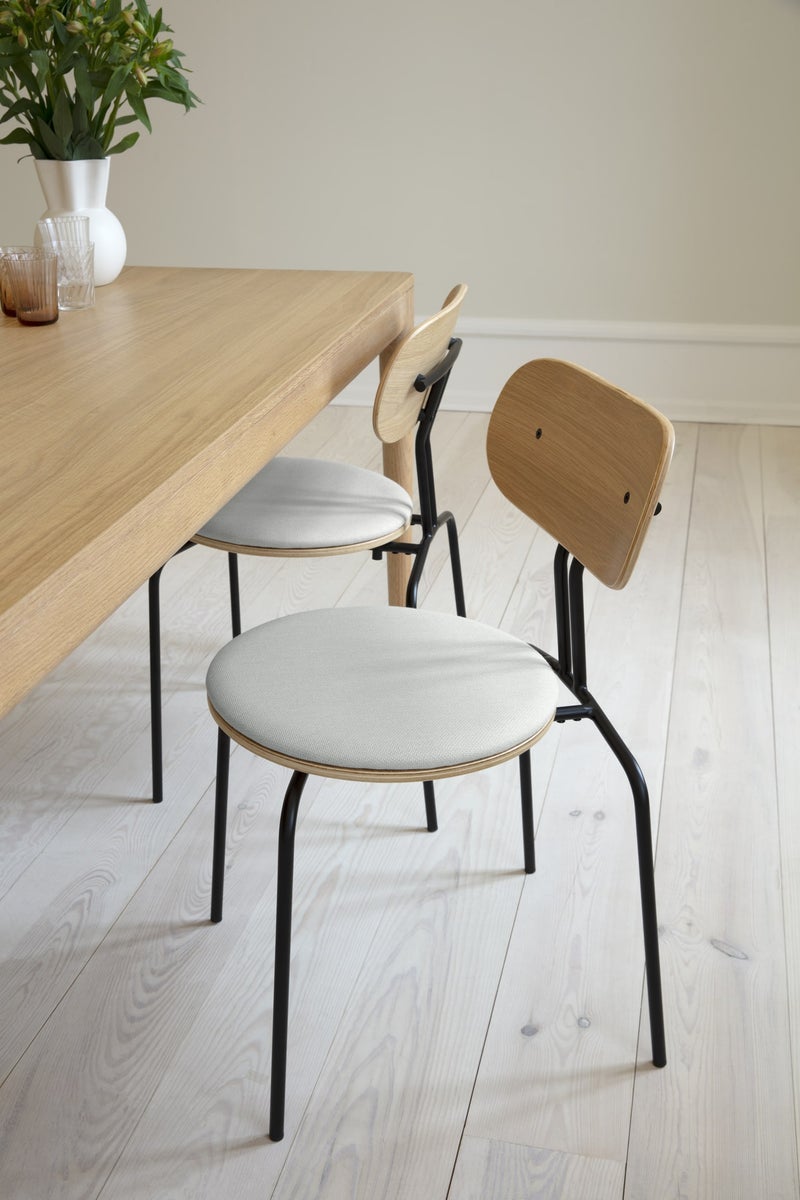 Pinottava Curious on kevyt tuoli minimalistisella ja elegantilla muotoilulla. Tammiviilusta valmistettu Curious on saatavana messinkisillä tai mustilla jaloilla sekä istuintyynyllä mukavuuden lisäämiseksi.