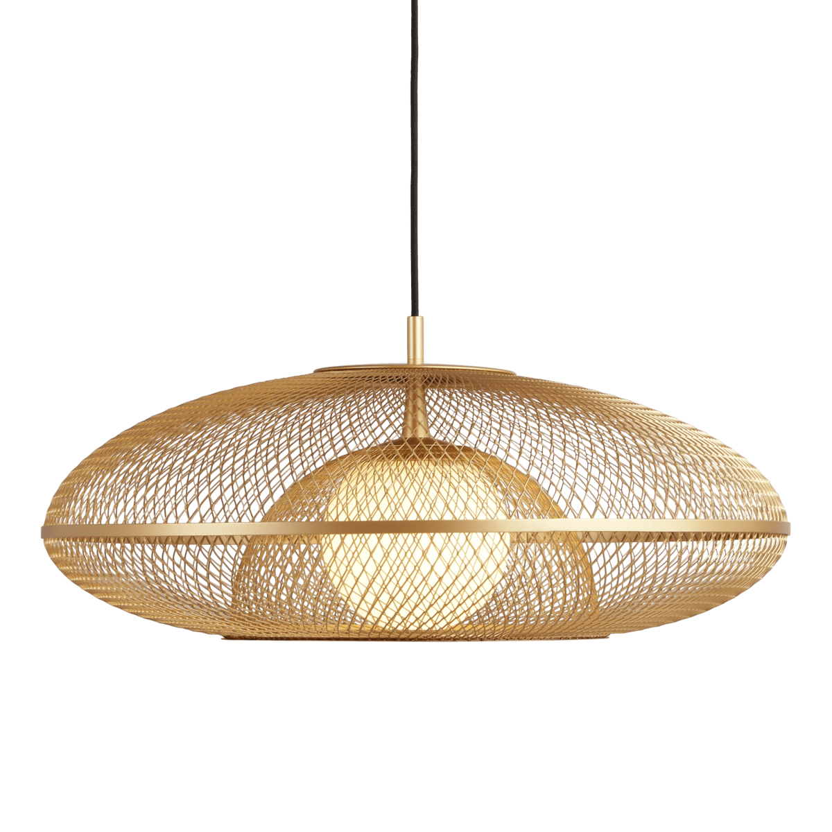 Tässä veistoksellisessa taideteoksessa on monimutkainen messinkiverkkorakenne, joka vangitsee varmasti silmän. Sen maidonvalkoinen lasipallo tarjoaa häikäisemättömän valaistuksen, joten se sopii täydellisesti niin ruokapöydän päälle kuin olohuoneen valoksi.