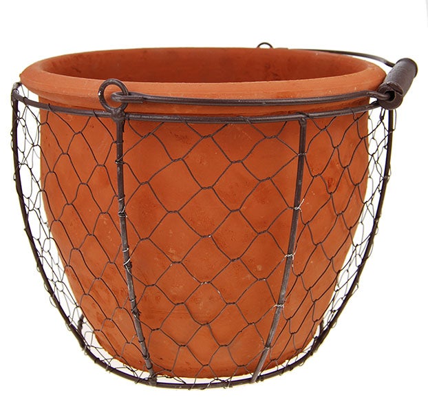 Kesäkukat näyttävät ajattoman tyylikkäiltä terrakotta-ruukuissa. Hauska verkkokori tuo pienen twistin tähän klassikkoon.
