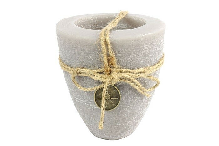 Perinteinen kaunis maljakynttilä juuttinauhakoristeella.