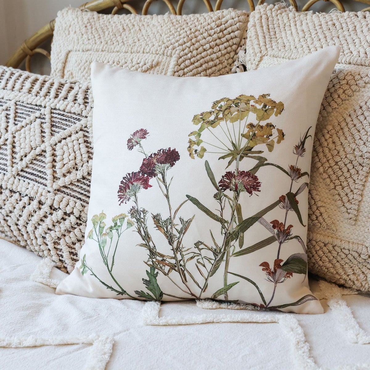 Upea sisustustyyny viimeistelee kokonaisuuden ja kesää vasten mikäs sen parempi vaihtoehto kuin kauniit vesivärikukat rauhallisen vaalealla pohjalla!