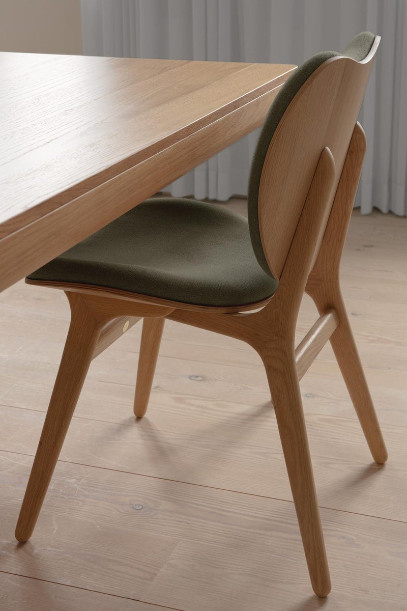 A Conversation Piece -ruokatuoli on saatavana useilla eri verhoiluvaihtoehdoilla, jotka on valmistettu Umagen 100% kierrätetystä Horizons-kankaasta.