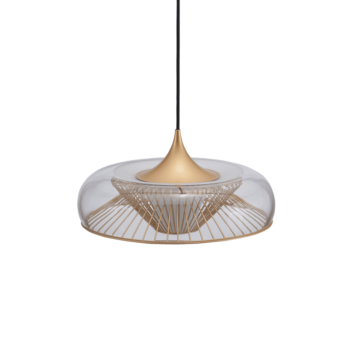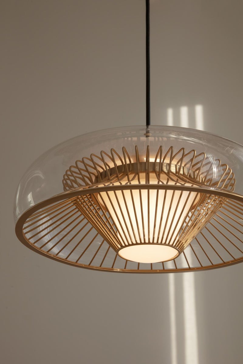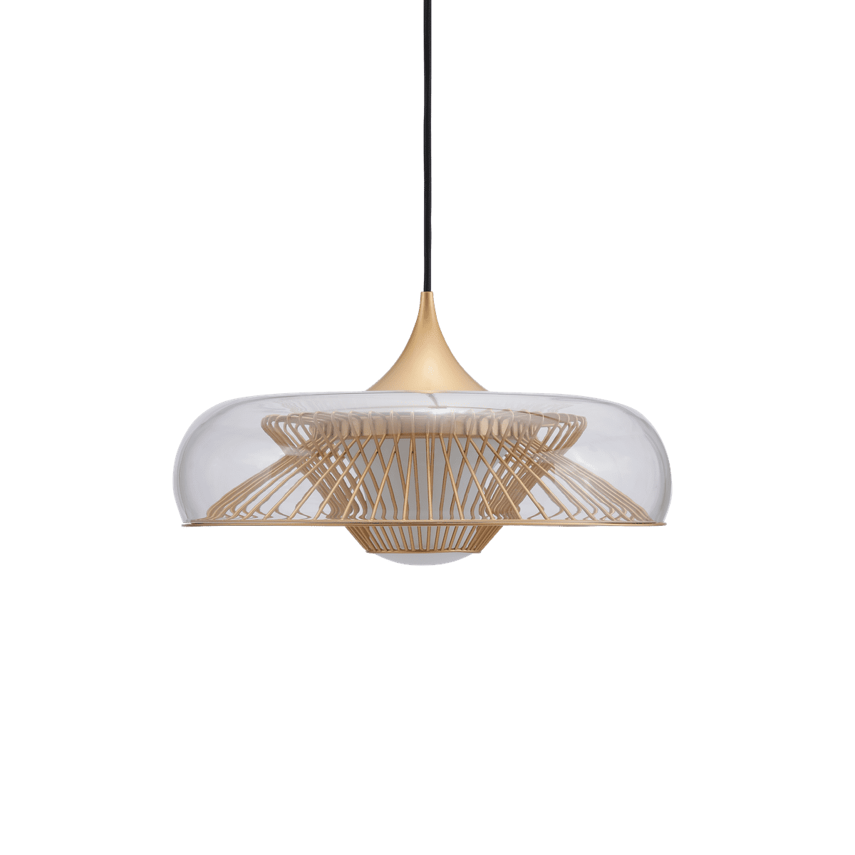 Chordis-lampunvarjostin tuo ajattoman lasin ja messingin yhdistelmän sisustukseen luoden ilmavan, lähes näkymättömän tunnelman, jota tasapainottaa kiillotettujen messinkikoristeiden lämmin hehku.
