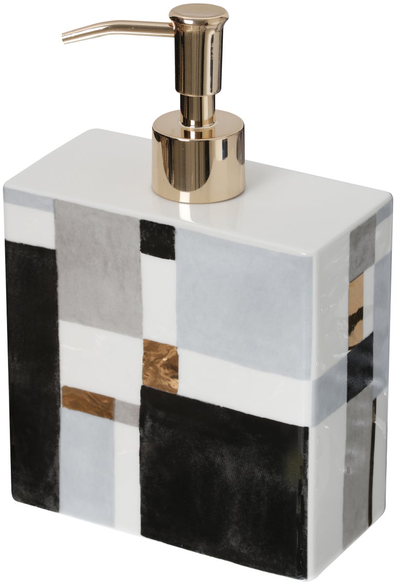 Saippua-annostelijan geometriset kuviot kultasomistein on kylpyhuoneen katseenvangitsija ja kauneudessaan toimiva käytössä. Voit yhdistää tuotteen Cult Designin keraamisiin alustoihin ja ilme on heti toisenlainen.