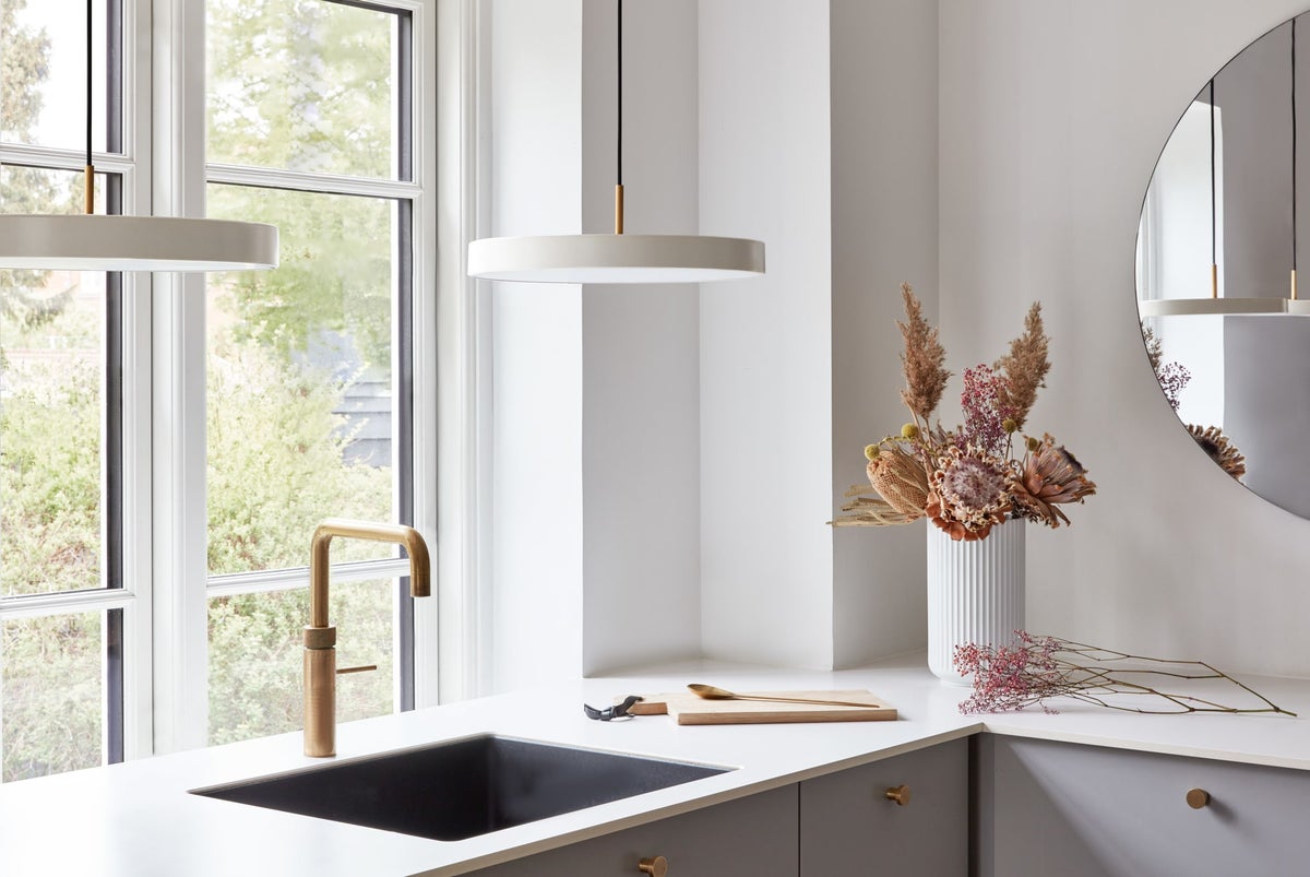 Umagen Asteria-kattovalaisimen muotoilu on minimaalinen, antaen lampulle linjakkaan ja tyylikkään ulkonäön. Asteria-sarjan johdolliset valaisimet tulevat kolmessa eri koossa, useissa eri sävyissä ja kolmella eri metallivaihtoehdolla, näin valaisimesta saa valittua juuri sen täydellisen version, joka sopii kotiisi koon ja sävyjen puolesta.